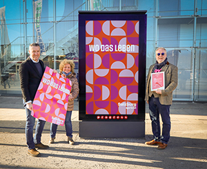 v.l. n. r.: Geschäftsführer Dominik Sobota und Angelika Gottschlich (beide Progress Werbung), Tomas Friedmann (Literaturhaus Salzburg)WO DAS LEBEN ZUR SPRACHE KOMMTDie Sujet-Serie des Literaturhauses…